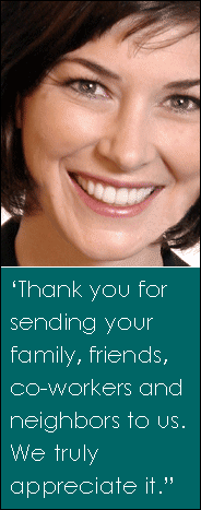 Our practice continues to grow and thrive because of your good word about us